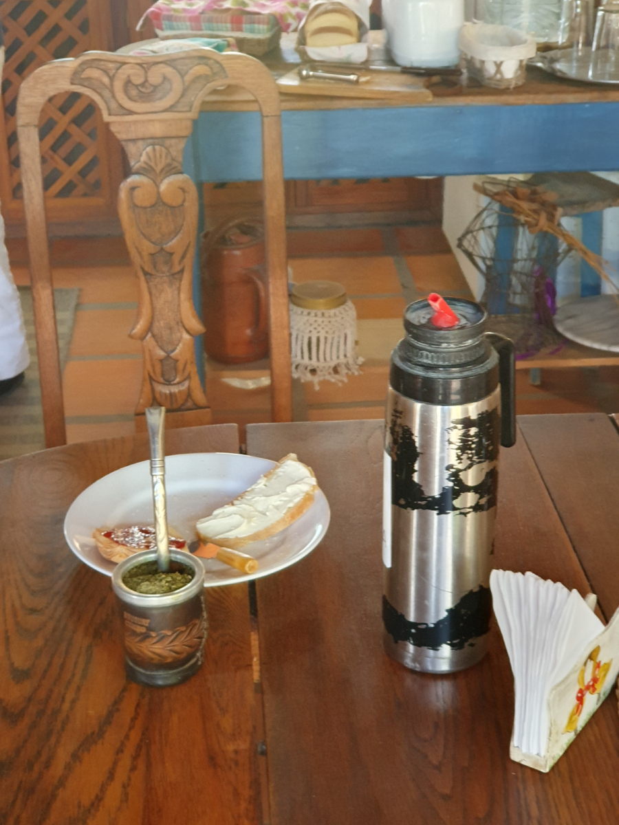 Bevor wir uns auf den Weg machten, wurden wir von unseren Gastgebern mit einem Frühstück nach mitteleuropäischer Art verwöhnt, während sich der Herr des Hauses nach uruguayischer Art mit Mate und ein bisschen Brot frühstückte.