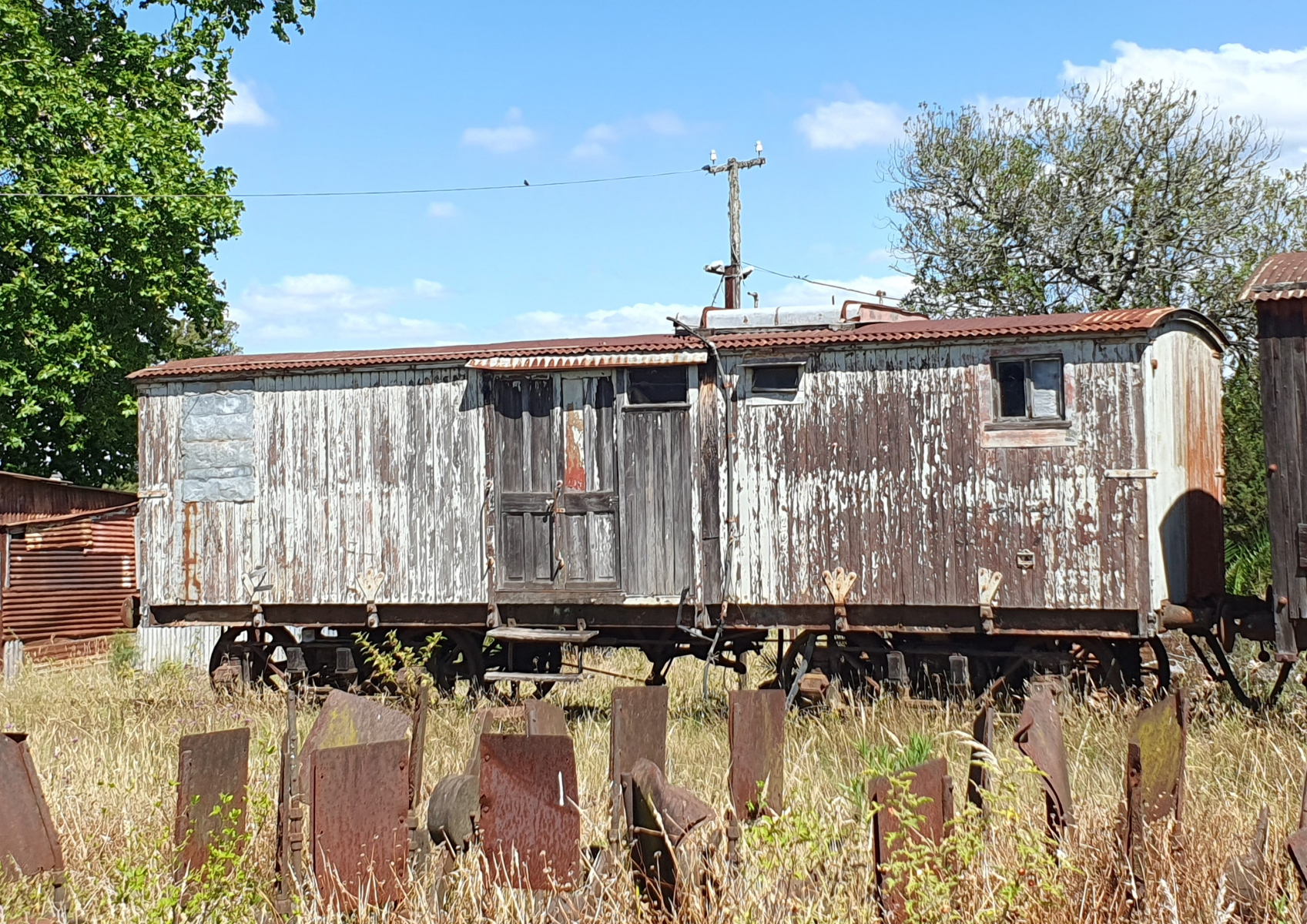 In dem kleinen, ziemlich verstaubten und verschlafenen Städtchen José Battle y Ordónez kamen wir an einem stillgelegten ehemaligen Eisenbahnbetriebshof vorbei, der deutlich macht, welche Bedeutung die Eisenbahn in Uruguay einmal hatte. Jetzt gammelt das Gelände aber offensichtlich schon seit Jahrzehnten vor sich hin. Auf dem Gelände lagern zum Beispiel noch Schienenteile, die einmal für die EWrhaltung des Schienennetzes gedacht waren, aber nie benutzt wurden.
