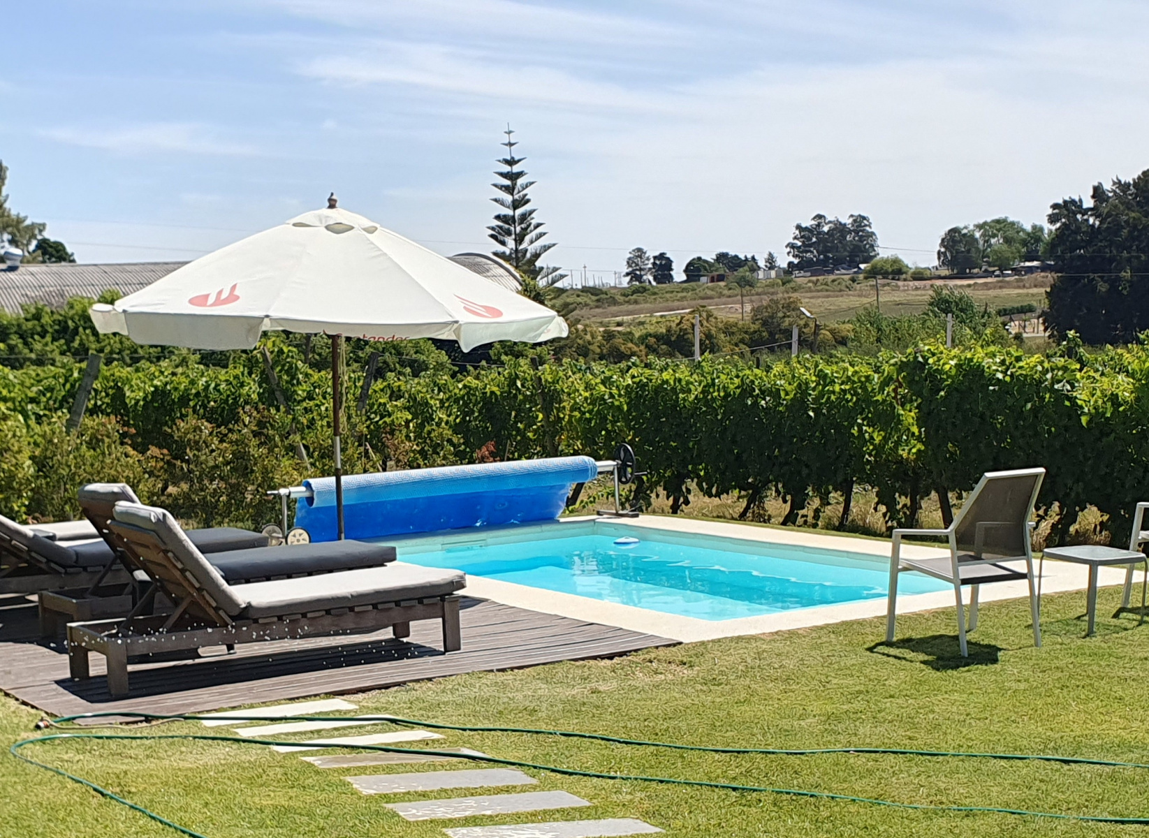 An unserem Zielort angekommen wurden wir inmitten der Weinberge in einem herrlichen Ambiente begrüßt. Am Ort des ersten Wohnhauses der Familie Pizzorno, die 1910 aus Piermont in Italien nach Uruguay auswanderte, haben die Nachkommen vor wenigen Jahren eine herrliche Posada mit wunderschönen und sehr modern ausgestatteten Zimmern errichtet.