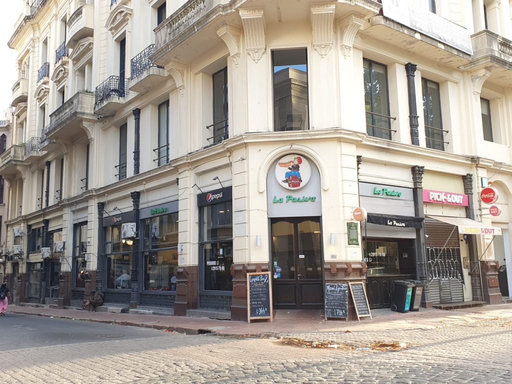 Zum Abendessen machten wir uns dann auf den Weg in die nahegelegen Bar „La Pasiva“ am Plaza Matriz. Das ist eine noch sehr ursprüngliche Bar, die sich über die Jahre kaum verändert hat. Die Atmosphäre spiegelt für uns viel vom Lebensgefühl der ganzen Stadt wider. Unser Lieblingsgericht ist immer noch Chivito; das ist ein kleines gebratenes Stück Lende quasi als Sandwich mit Tomate, Ei, Salat und Pommes Frites. Das war der gelungene Abschluss des Tages unserer Rückkehr nach Montevideo.